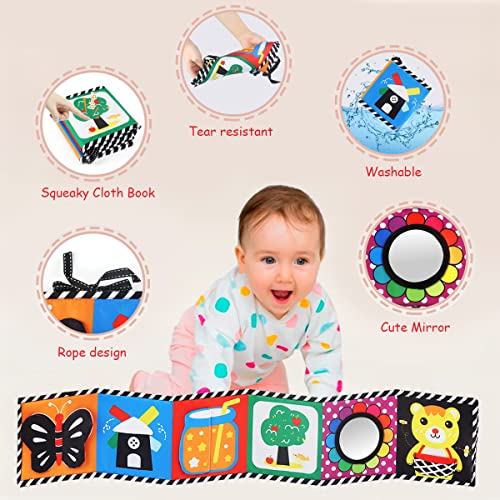 Ballery Zwart wit boek baby, contrastboek baby zachte doek boeken speelgoed met spiegels stoffen boek baby speelgoed…