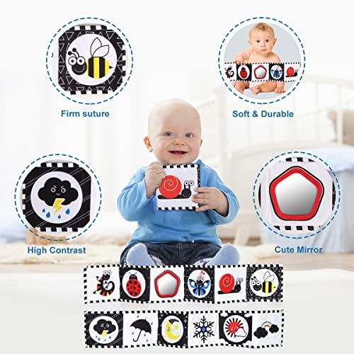 Jenilily Tummy Time Stoffen boek voor baby’s, zwart en wit, kinderwagen, autostoeldoek, educatief speelgoed, cadeau voor…
