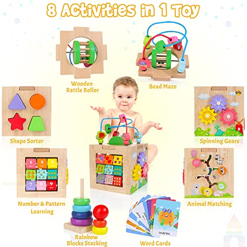 Specification: Kizfarm Treewant 8-in-1 houten activiteitenkubus, babyspeelgoed 12-18 maanden Montessori-speelgoed voor 1 jaar oud…