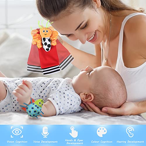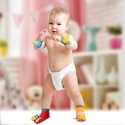 Vicloon 4 sutks Voetzoekers & Pols Rammelaars voor Baby’s, Baby Rammelaar Speelgoed Dier Pols Rammelaar Zachte Bell…