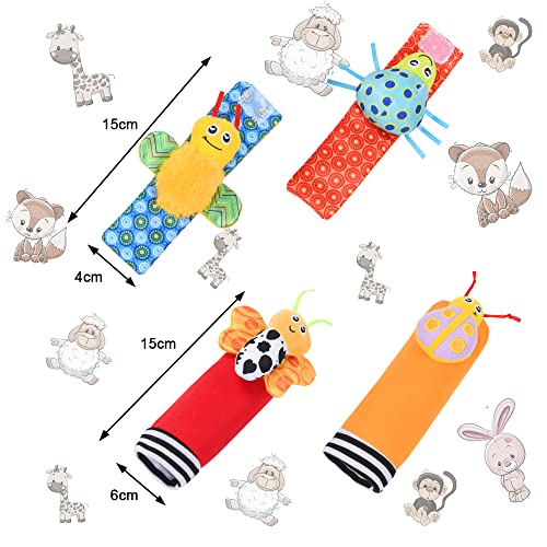 Specification: Vicloon 4 sutks Voetzoekers & Pols Rammelaars voor Baby’s, Baby Rammelaar Speelgoed Dier Pols Rammelaar Zachte Bell…